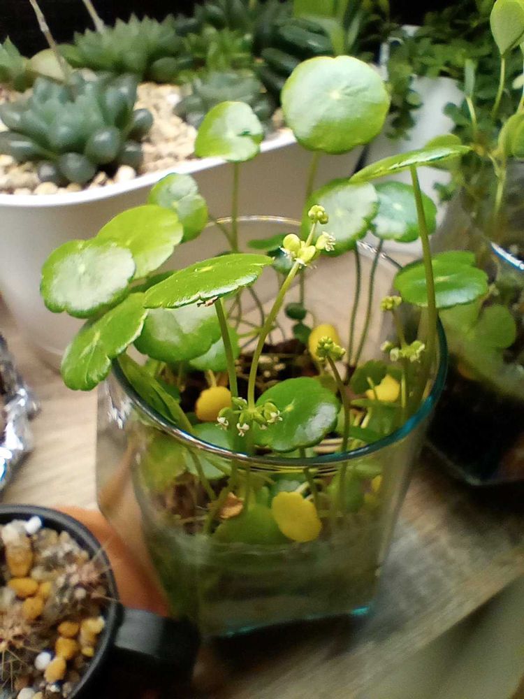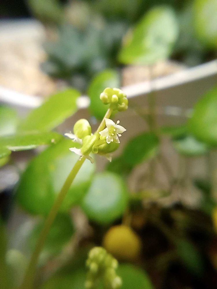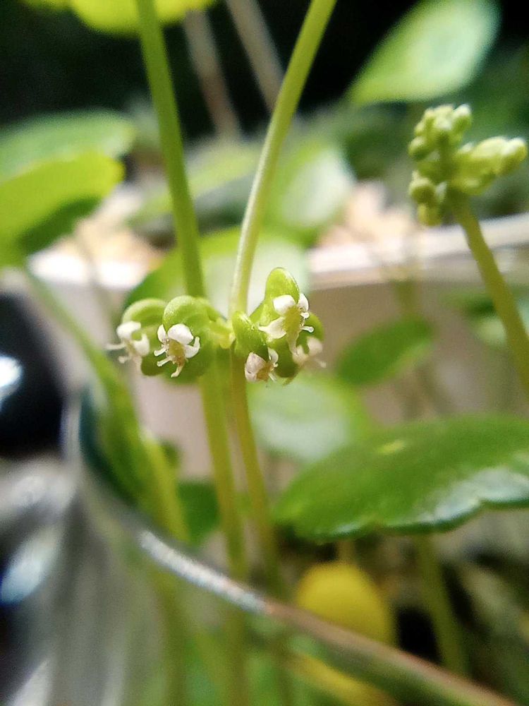 室内で水耕栽培しているウォーターコイン(ウォーターマッシュルーム)のお花が密かに咲いてました🤭🤍