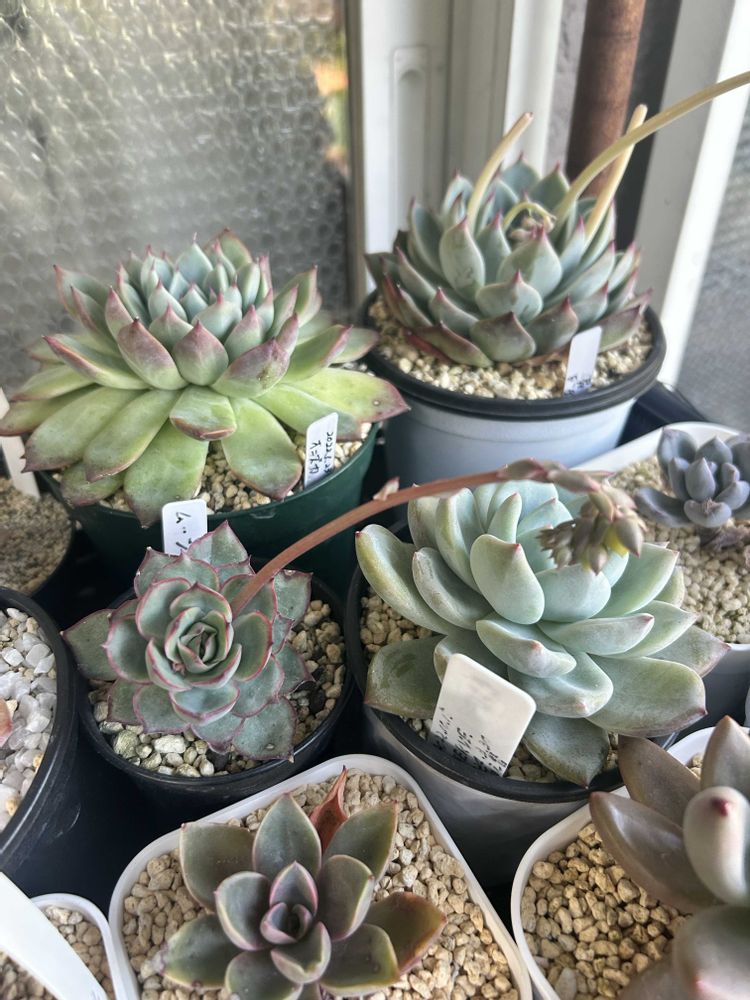 初心者🔰のぐでたまは交配なんて出来んわ〜😱 花芽出とるなぁ~って思いながら、見て見んフリしとる〜www🤣 だから多肉ちゃんたちが小さくなるんよね〜😅💦