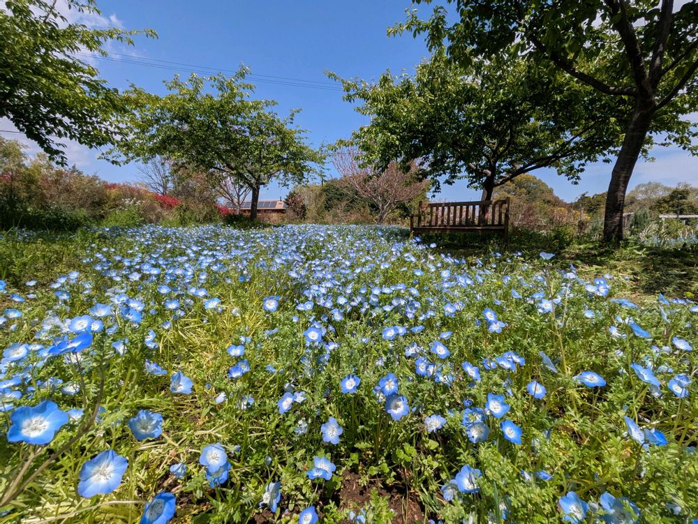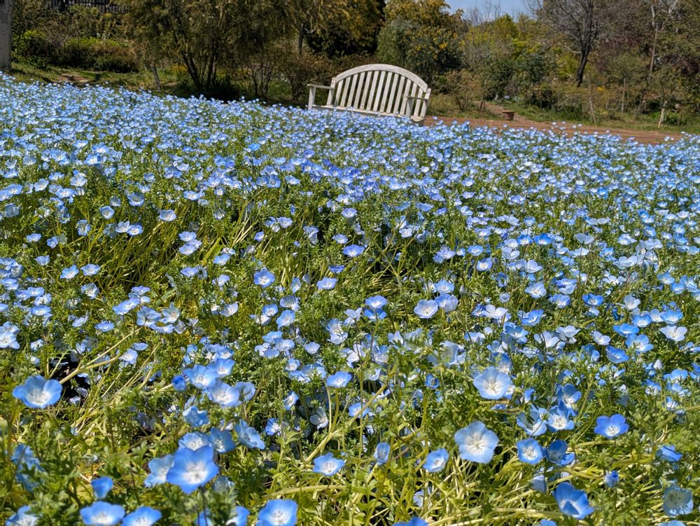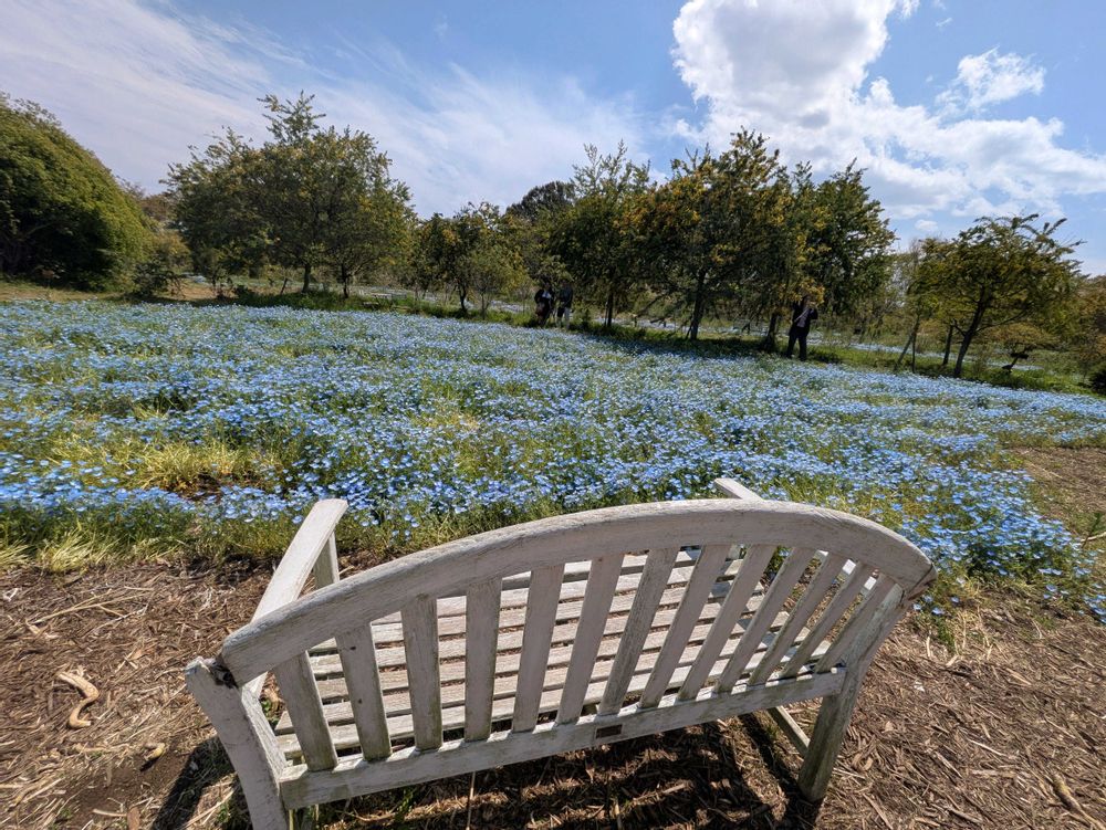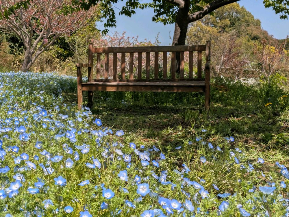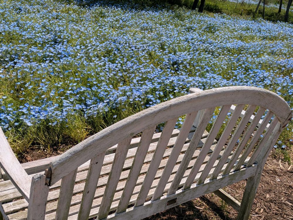 ネモフィラとベンチ🪑とっても素敵ですね💙