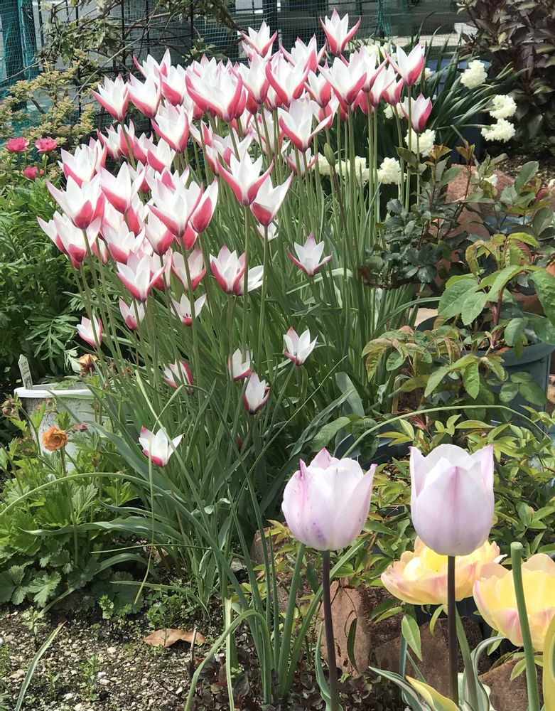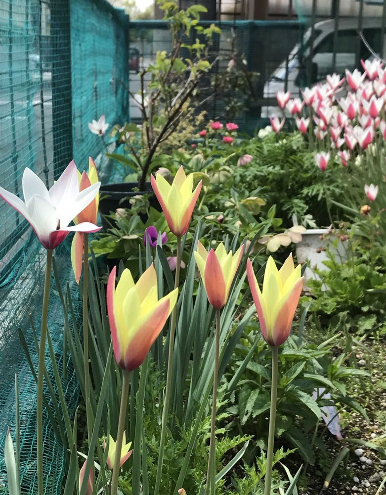 ①原種チューリップ・ペパーミントスティック 小さな庭なのに凄く増えました😅