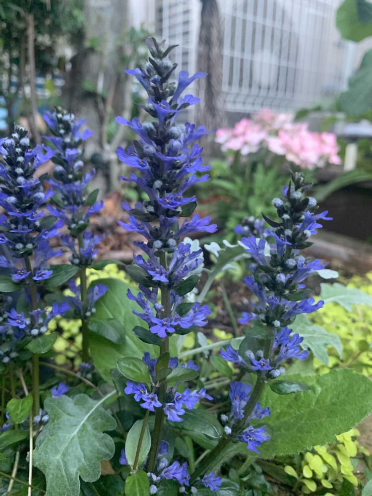 2️⃣3️⃣庭に植えてあるアジュガがぐんぐん成長して、沢山の花を咲かせています。