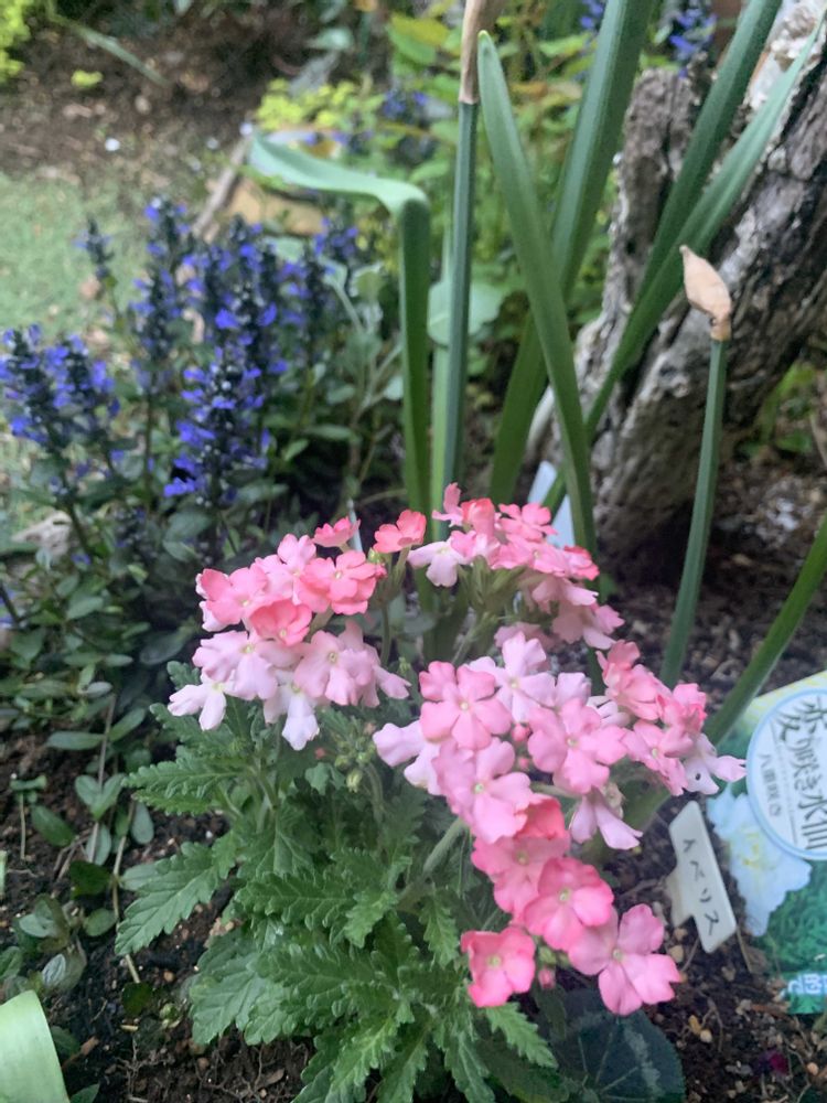 4️⃣バーベナのピンクの花と青花とのコラボが可愛いらしくて、小さな庭の中でお気に入りの一風景✨