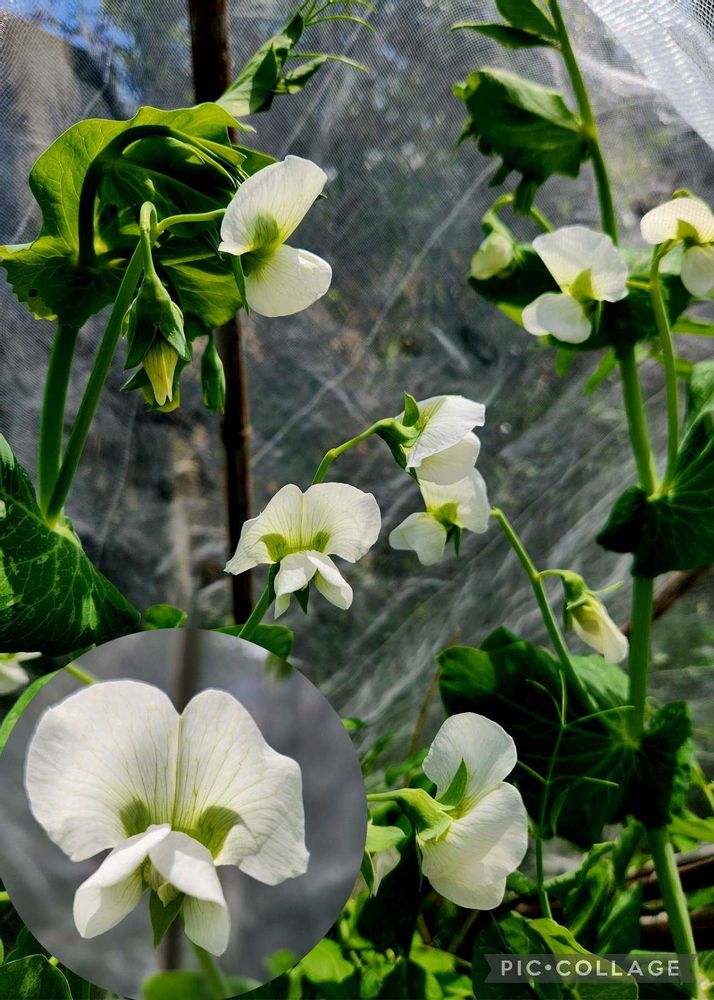 ①エンドウ豆の葉っぱをヒヨドリに食べられるので網をかけました。