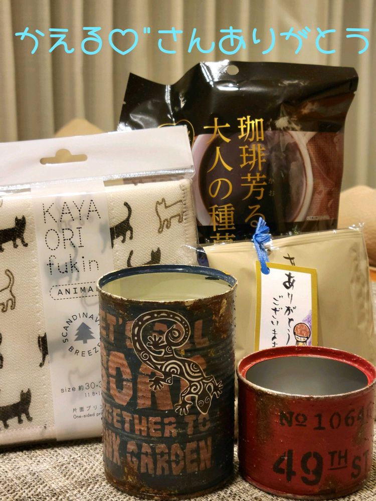 かえる♡"さんのプレ企画敗者復活で、素敵なリメ缶やお菓子が届きましたᰔᩚᰔᩚᰔᩚ