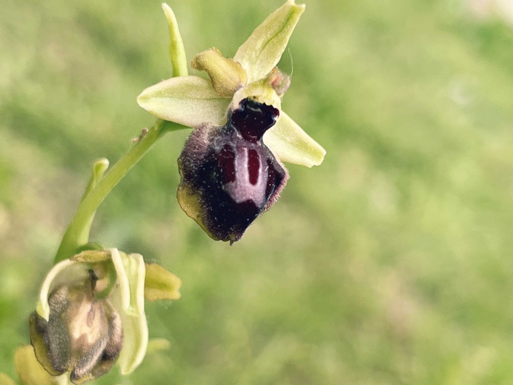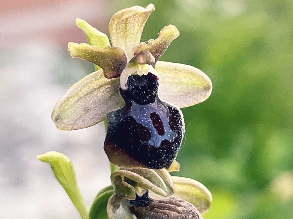 花びらの模様がHというかOというか、左右に入る縦線がつながっている。普通の蜂蘭(Ophrys passionis)は縦棒2本。