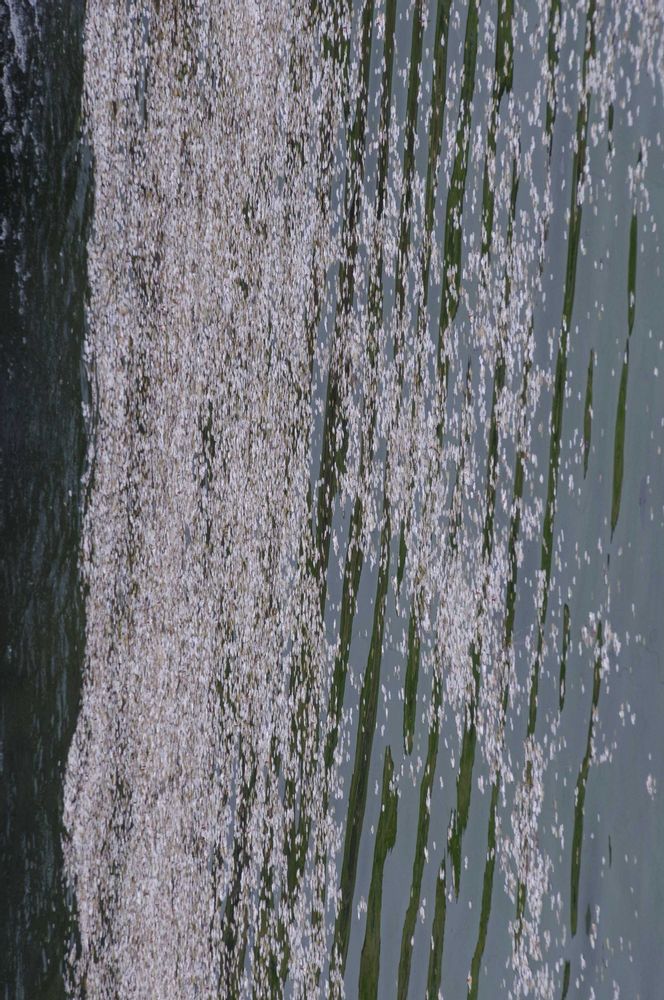松本城のソメイヨシノの満開が過ぎ、風が吹いていたので花筏を期待して行って見ました🚶