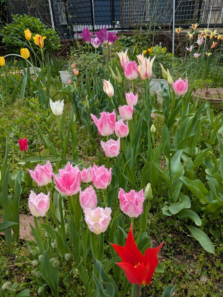 今が、我が家の一番華やかな時です。🌷♥️🌷💓🌷💛🌷🩷