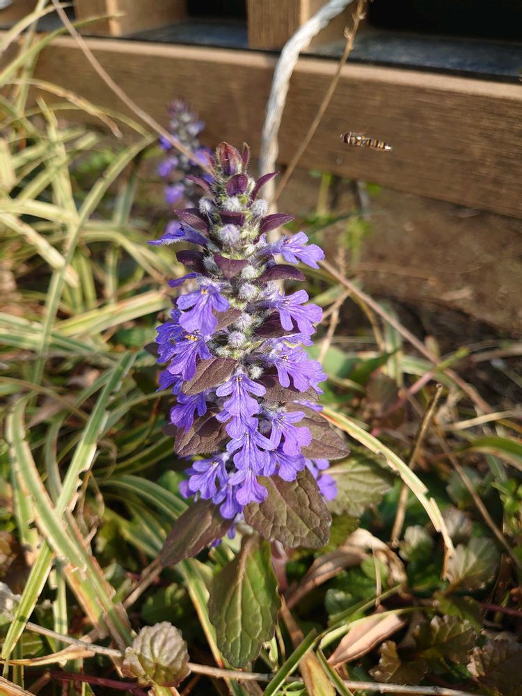 5️⃣セイヨウジュウニヒトエ💜ハナズオウと同じ公園の片隅に咲いていました🐝偶然飛んでる蜂さんが参加してくれました🐝😊