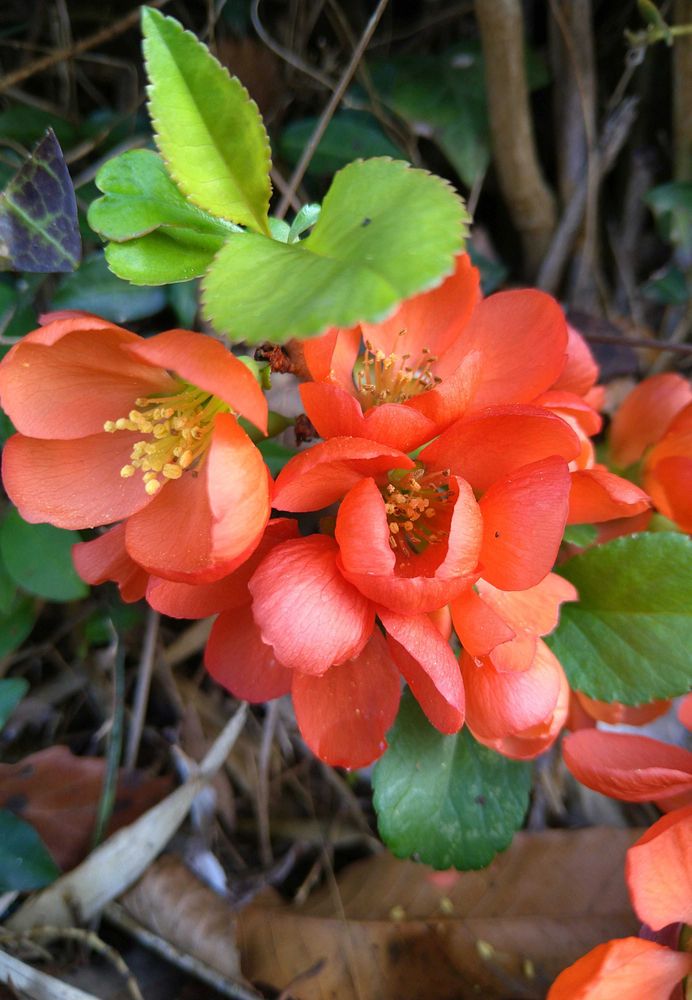 足もとでクサボケは満開に、ヤマブキの花も山裾を彩り始めました✨❤️🧡✨
