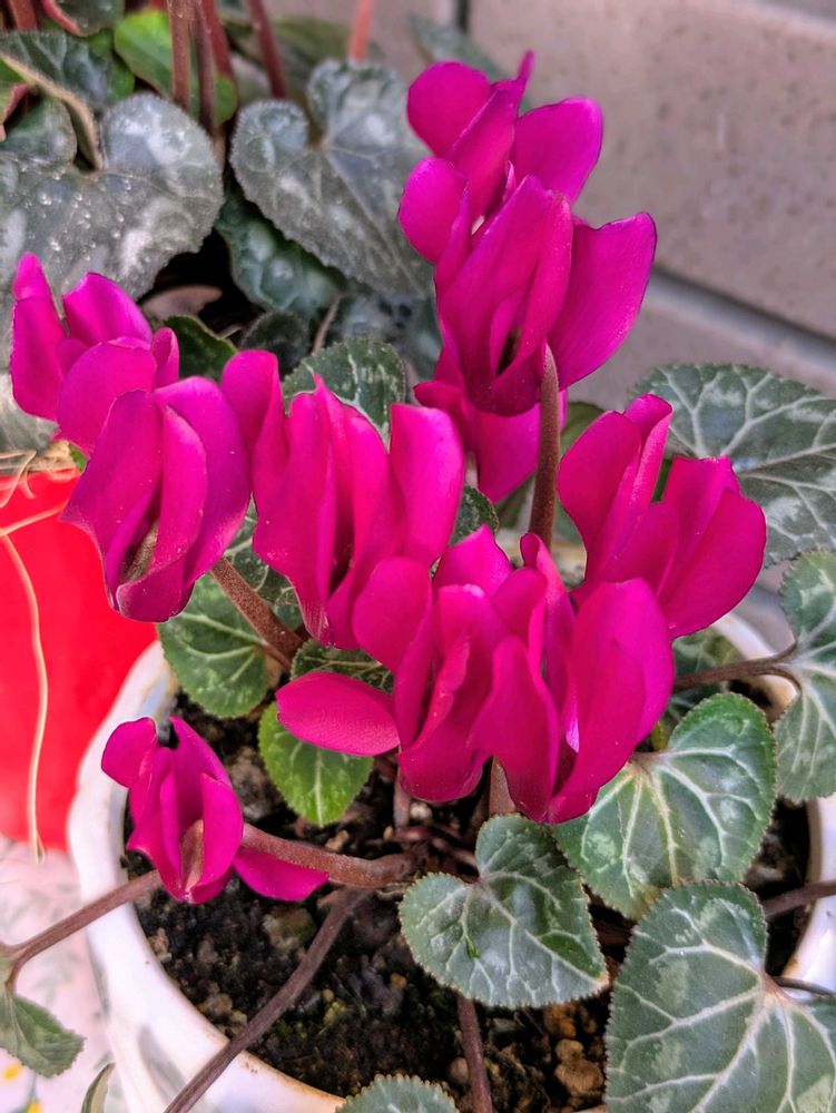 3⃣綺麗な赤紫色で透明感もあるこのシクラメンは、昨年10月18日にお迎えしたので、半年経ちます🎶