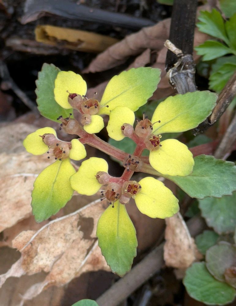 苞は、一見するとボタンネコノメの色合いに近い🟡🟢