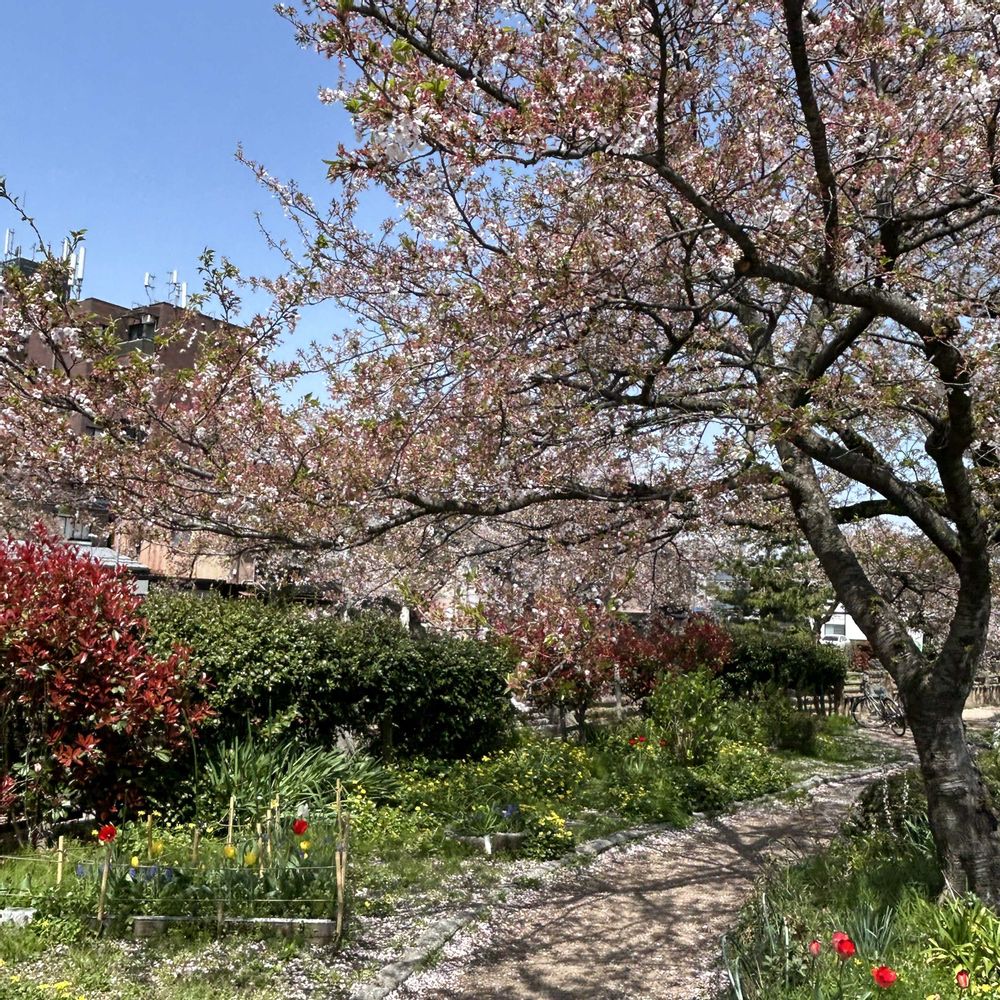 お店の近くにある川を通ったら、終わりがけの桜が。