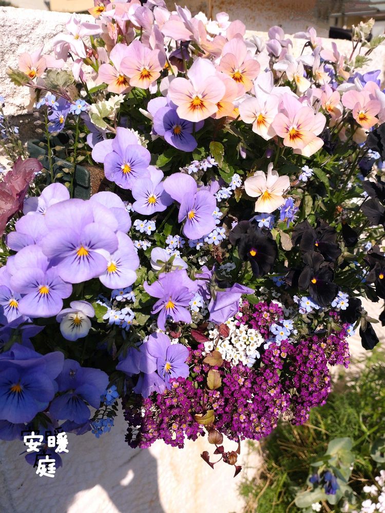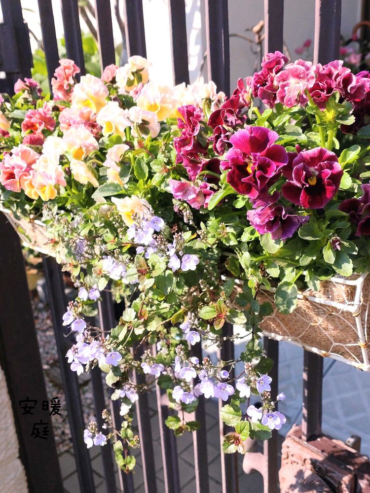 3 自家採種のビオラ寄せ植えも、ベロニカ・ウォーターペリーブルーが開花して完成✨