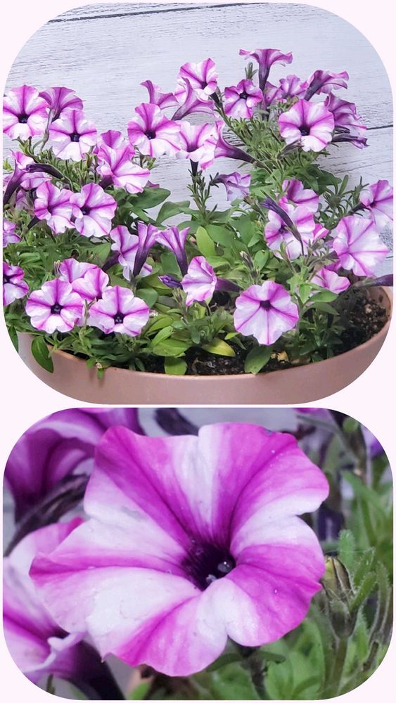 同じようなお花が好みのようで ペチュニアの特徴 ペタペタしますが お花は可愛いですよね この色とあと紫 あり 咲いてます❤️💜🤍