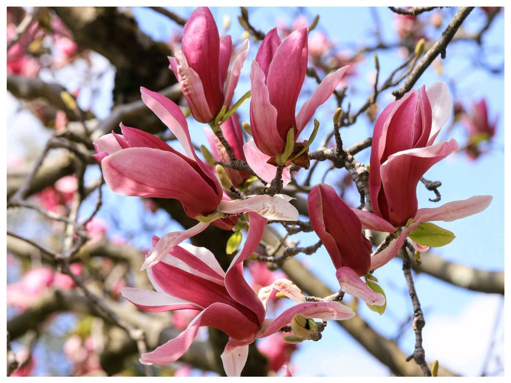白いモクレンより紫?濃いピンク色?💜🩷の花弁の方が大きいな〜と感じます