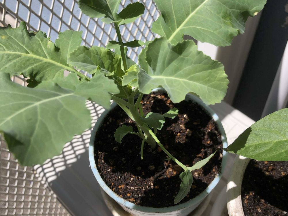 茎ブロッコリーは20cm近くなってきたから別の大きい鉢に植え替えようっと