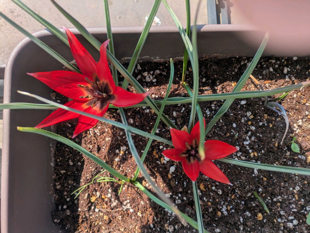 プランターのチューリップやっと咲いた。ムスカリと一緒に植えたんだけど全然でてこない。多分球根がだめだったのかも。チューリップも原種系の品種で地味…あんまりなのであとから花の種も蒔いておいた。