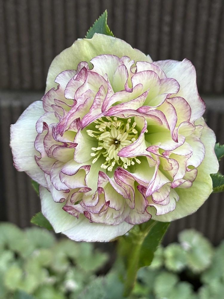 ワイヤー利用とは?恐れ入りました、アイデアウーマンですね。八重のクリスマスローズ珍しい色合い。グラデーションもあり、お見事。栽培がんばってます。