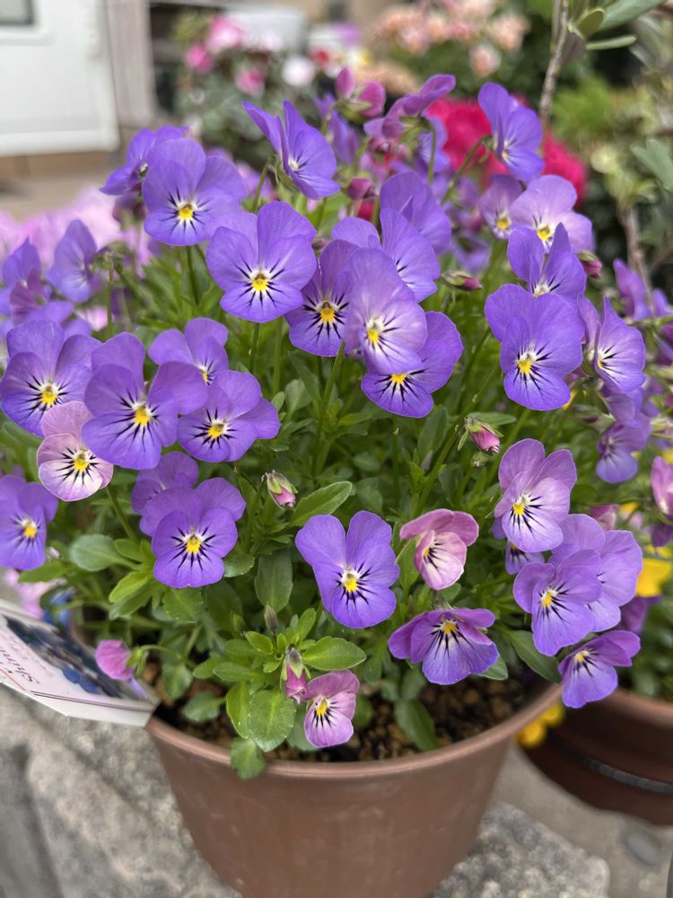 お花屋さんの処分市で100円でモリモリ💜こんな可愛いビオラ気に入ってしまいました😍
