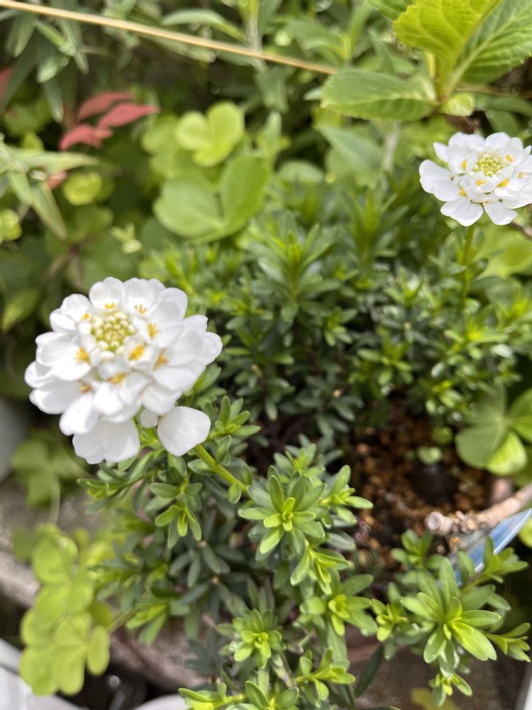 イベリスさん昨年の夏に⭐︎になってしまって、秋頃にお迎えしたのが最近ようやく咲いてます🤍水肥料とかやってはどうでしょう〜🌸紫もあるんですね🟣