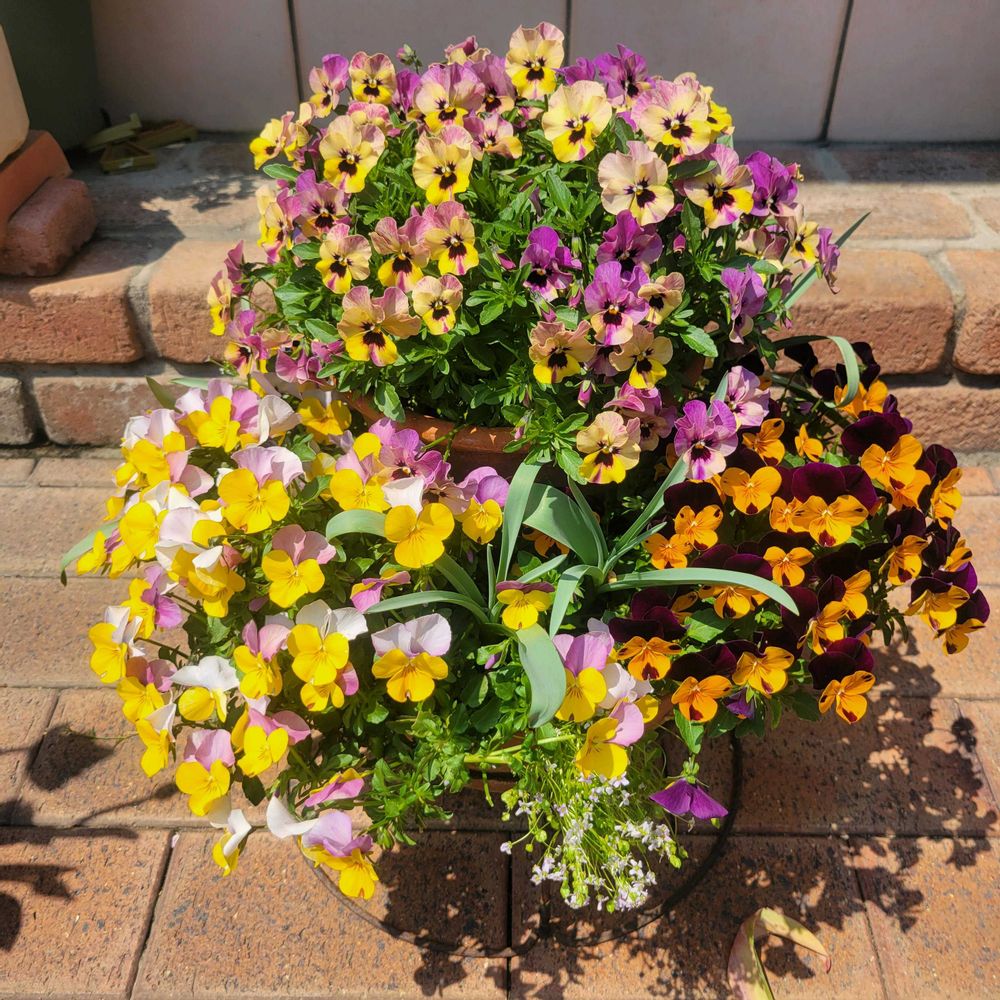 重ね鉢の現在✨上のももかおまつりが咲き揃ってきました✨後方のブルーのジャンプアップは切り戻したので見せれません💦