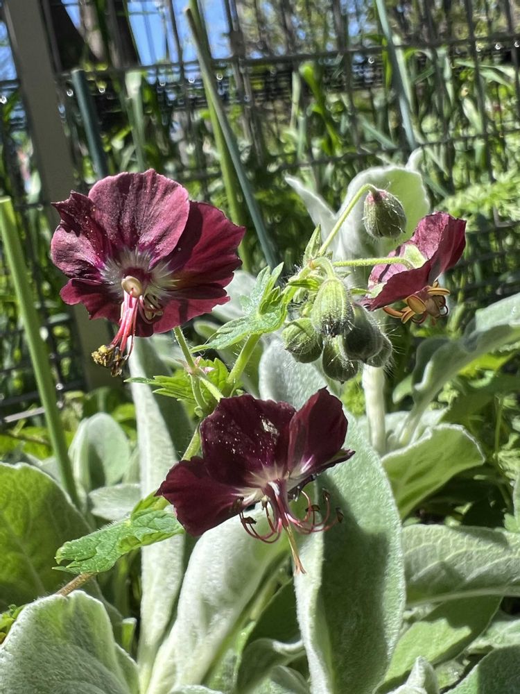黒バナフウロ、ポテンティラ ポーフィランサ、都忘れが咲きはじめています