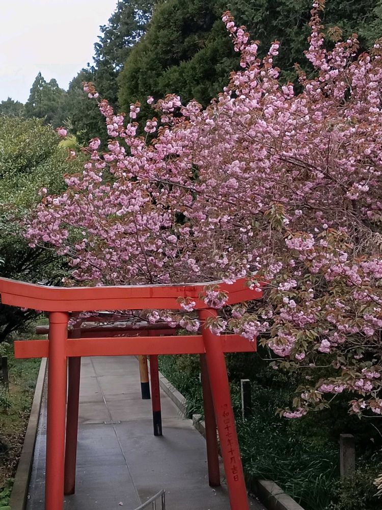 ②③ピンク色の桜、鳥居といい感じです✨🌸⛩️