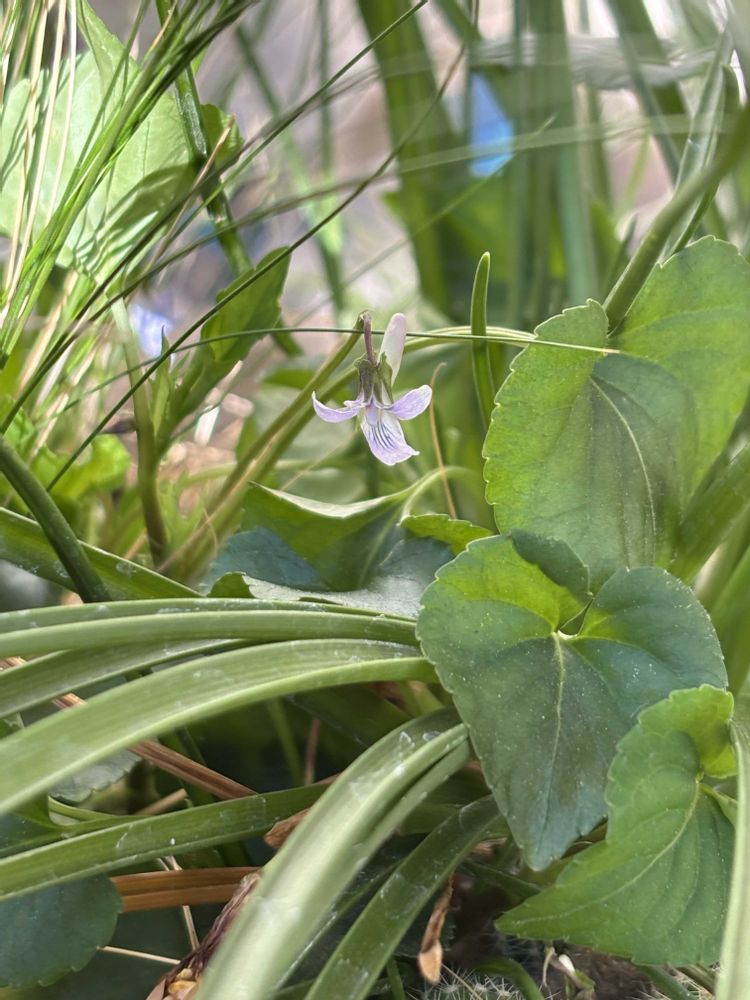 我が家のベランダの鉢植えから突如小さなすみれが咲いているのを発見