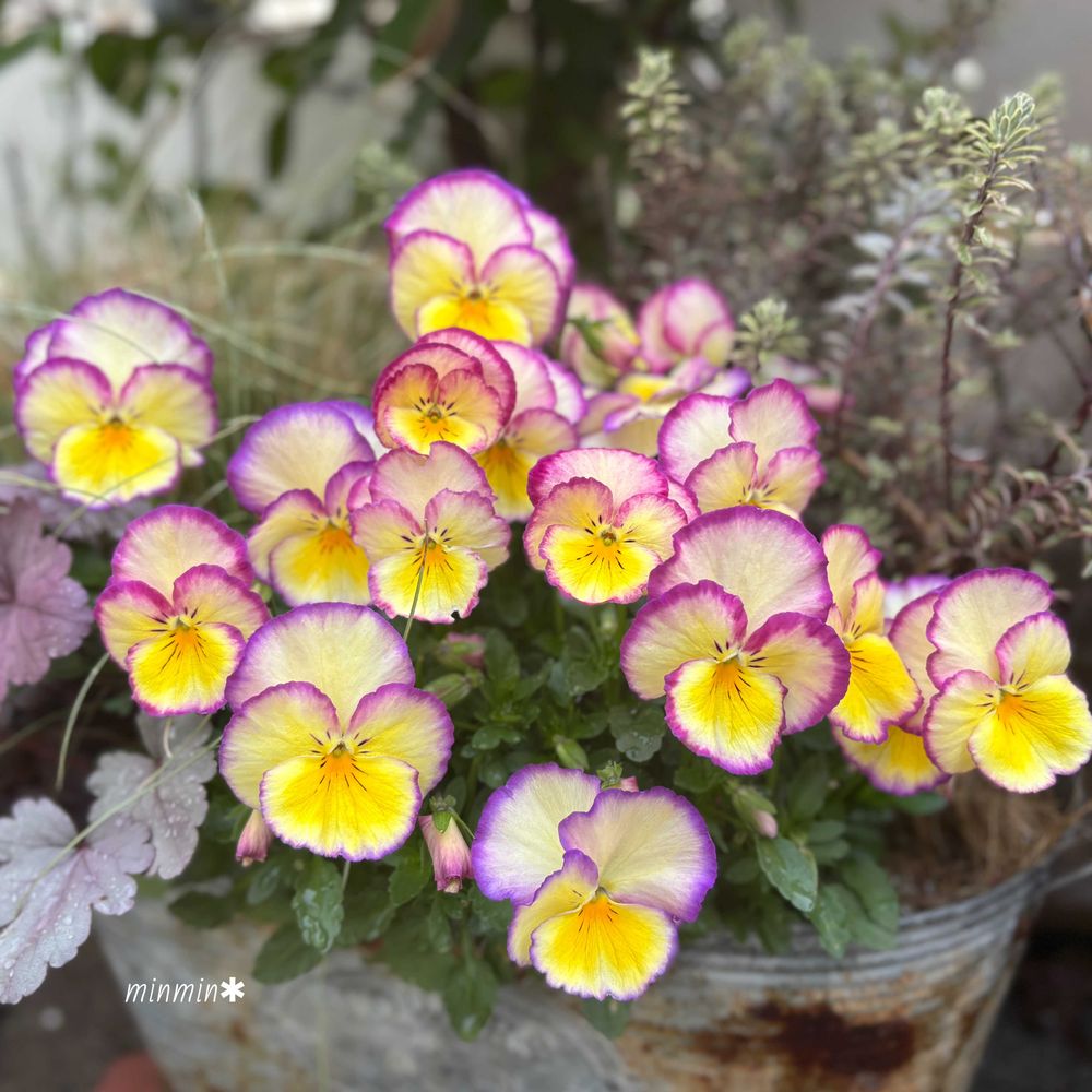 ②紫と黄色の組み合わせの虹色すみれさんも爽やかで可愛い💛💙
