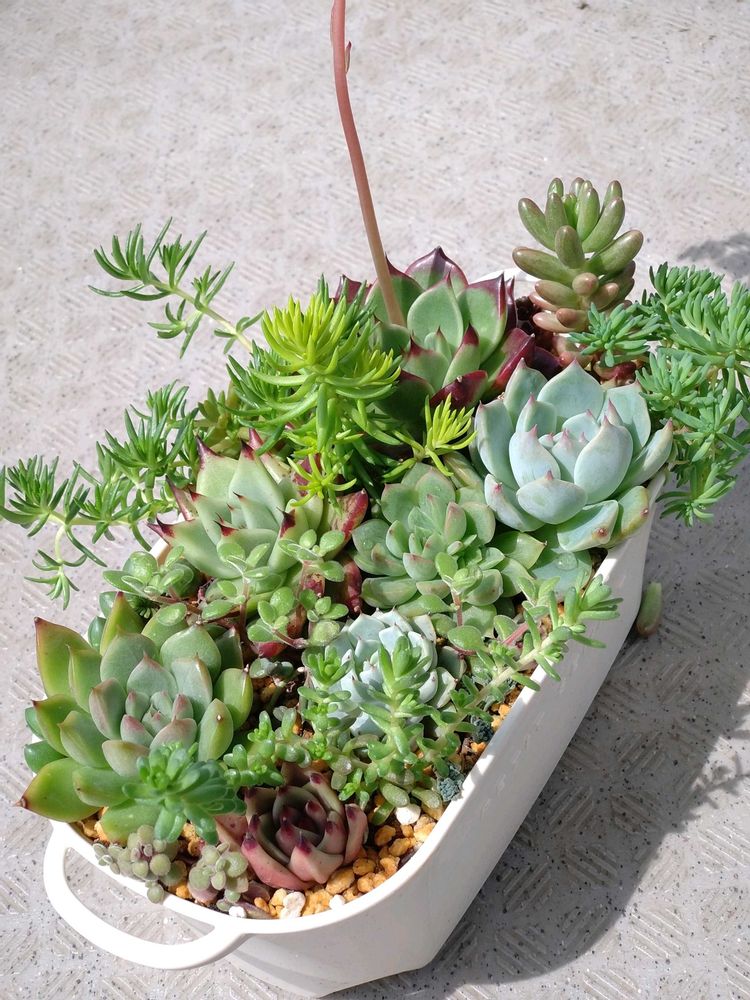 2) 沙羅姫牡丹×スパクロ は凄い速さで緑になっていきます。女雛と野バラの精は夏頑張ってな!(多肉任せ)
