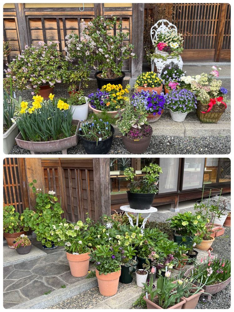 3枚目・冬の間縁側に避難していた花たちを外に出しました。