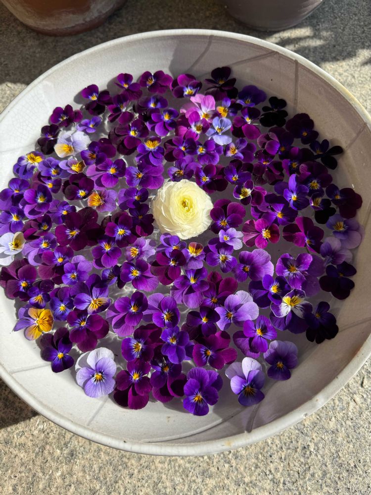 庭のあちらこちらに勝手に咲いてるビオラ💜を集めてました😊
