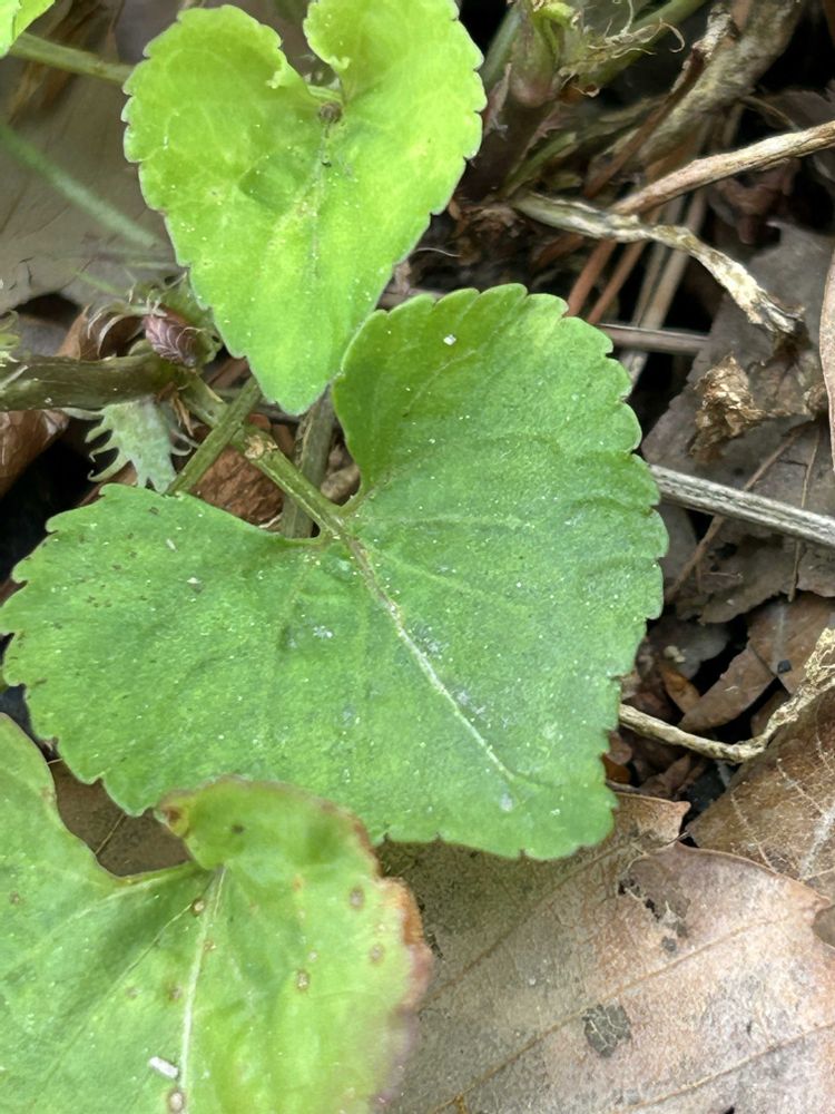 葉は、丸くてフキの葉みたいな形です。2枚目の下の方の葉は、ドクダミの葉かな
