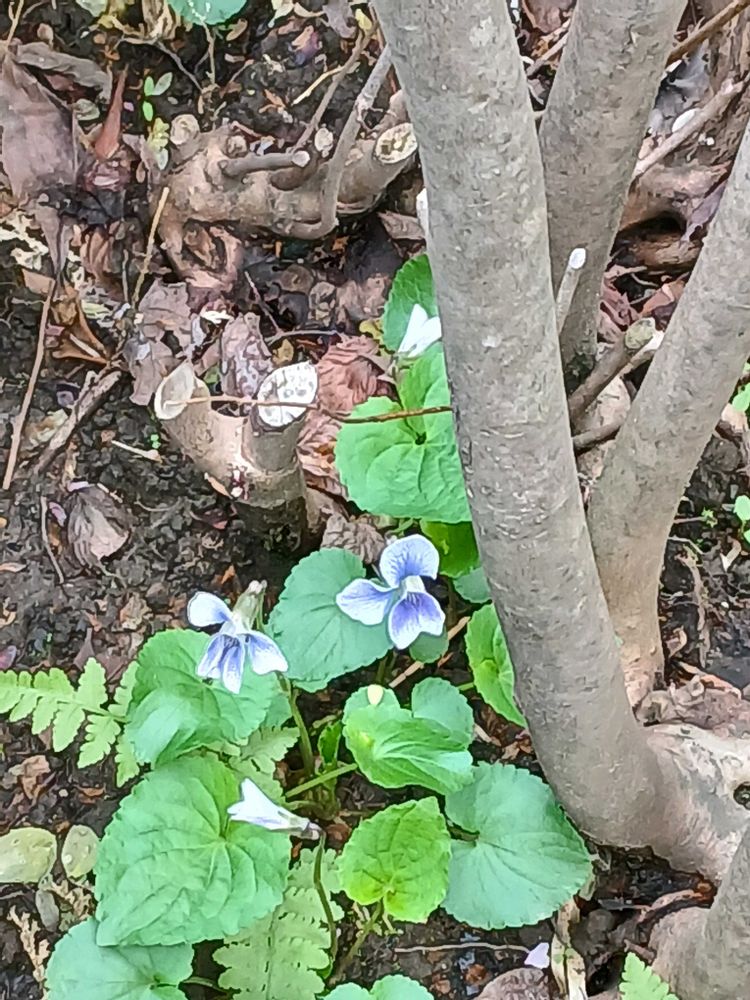 ⑤土佐水木の根元は毎年アメリカスミレサイシンが咲いています。