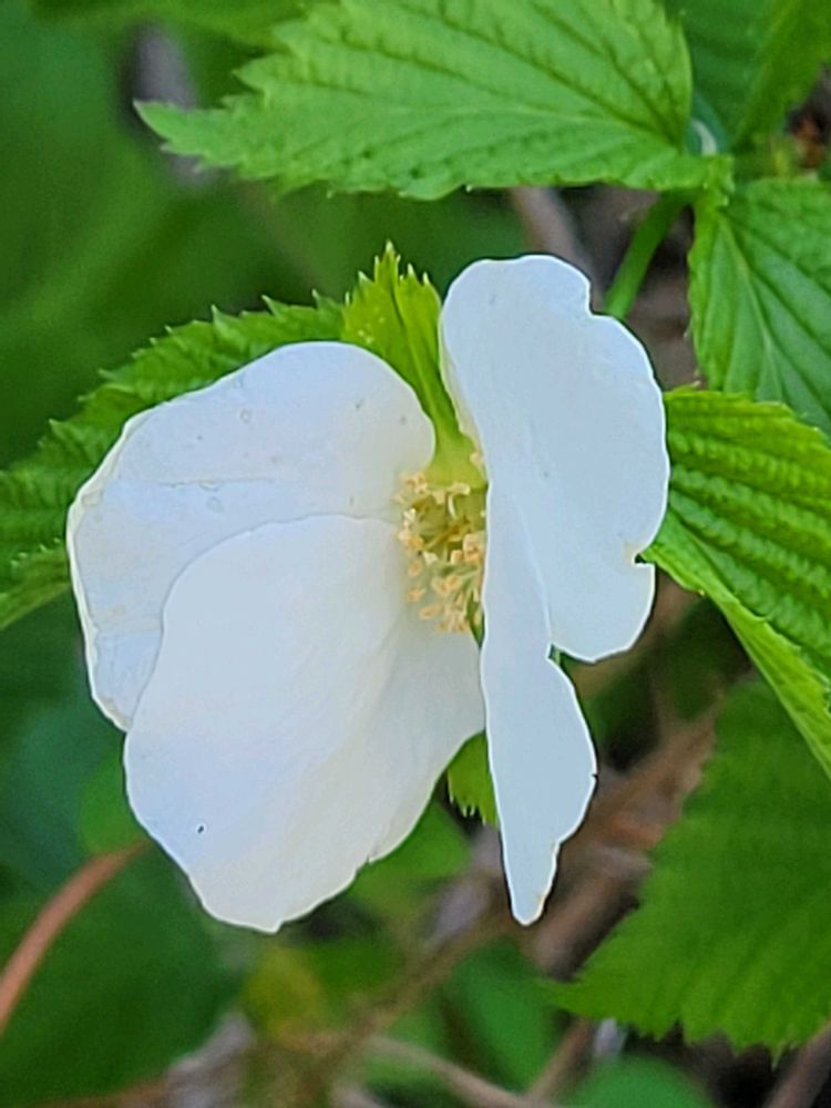 この白山吹は、散歩中に民家の脇の放ったらかしスペースに咲いていました🤍
