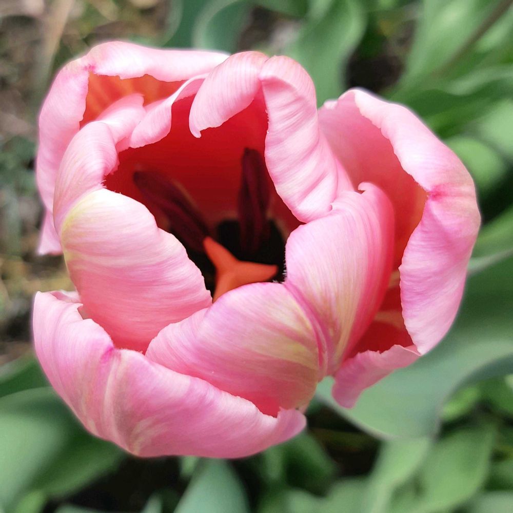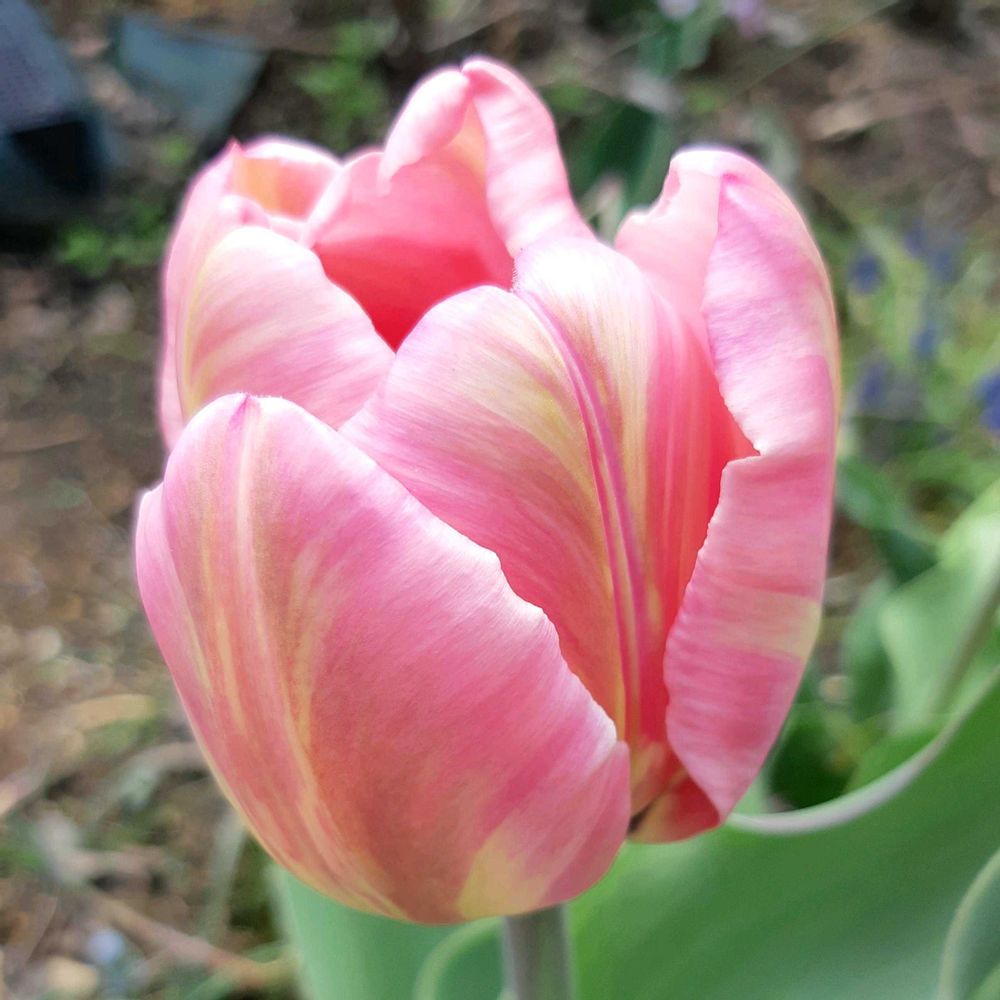 ほんのりマーブルがかったピンクのチューリップ、今年も咲きました🌷🌷🌷