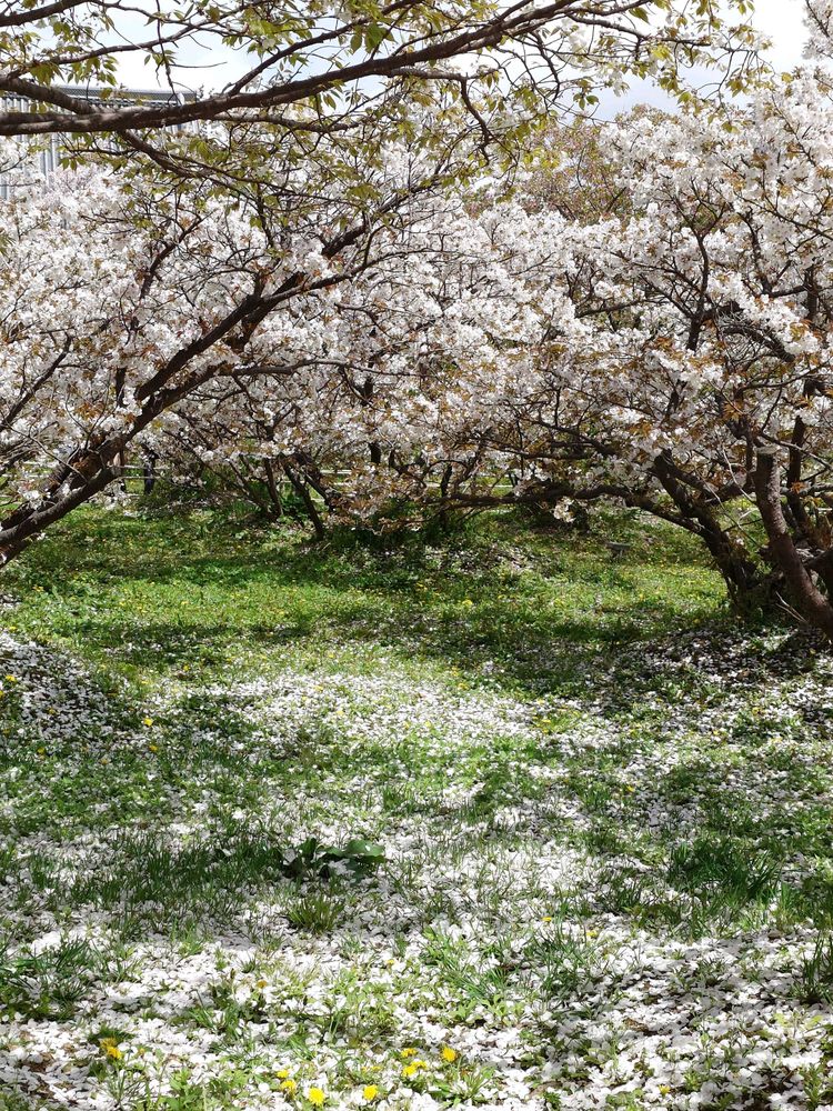 ⑤桜のトンネルの下には散り敷かれた花弁が…