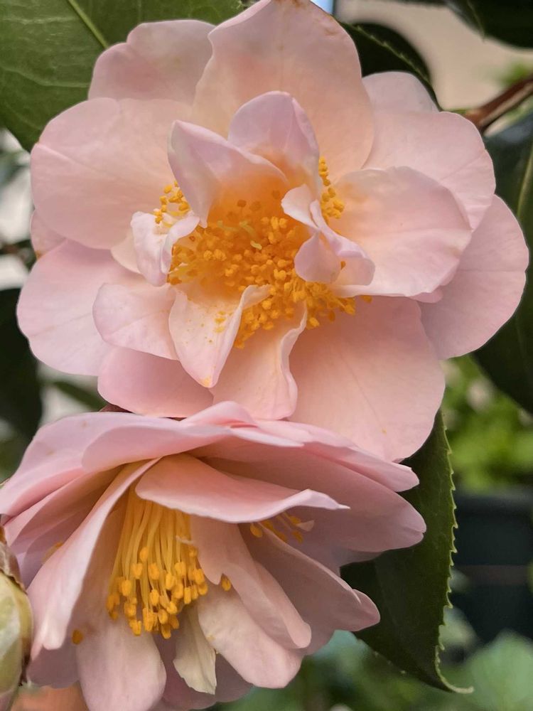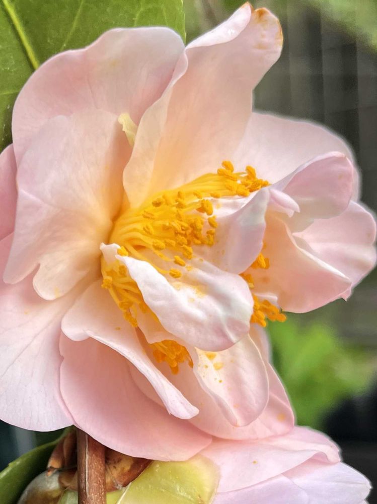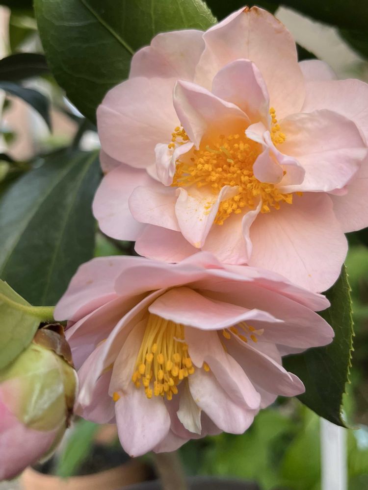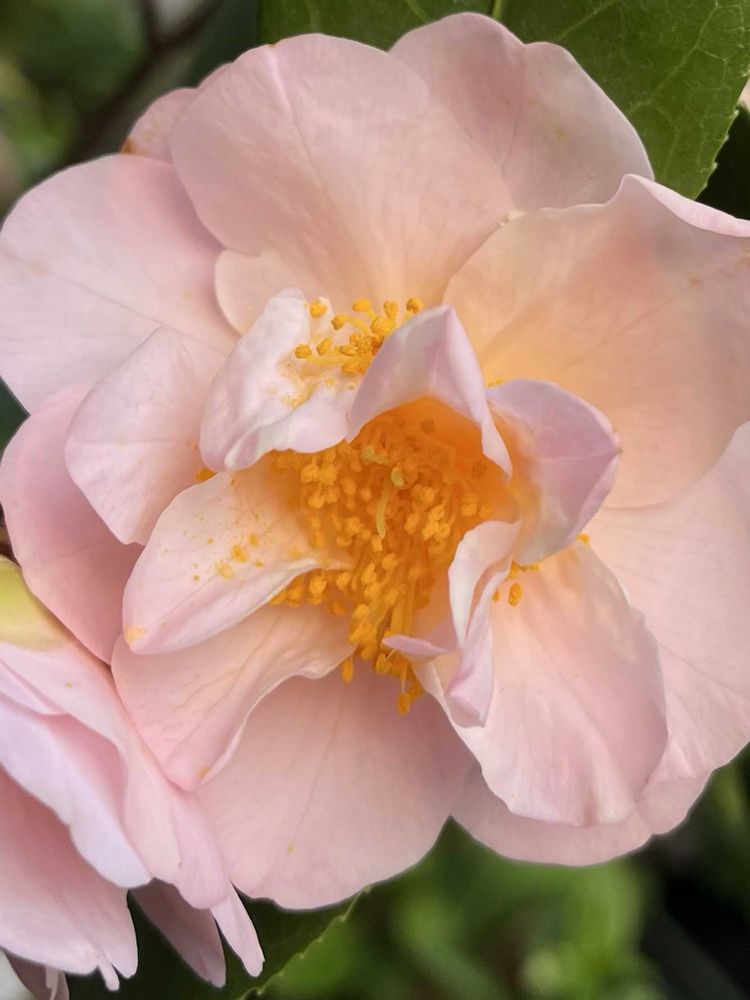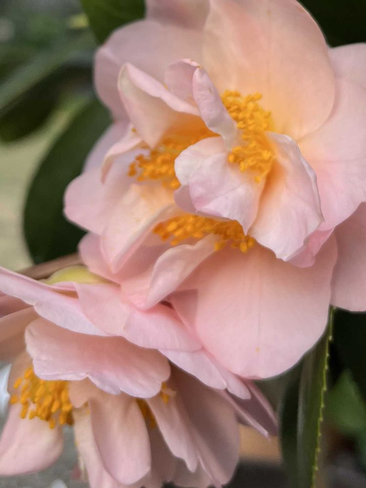 椿・雪小町🎵夕方に見ると、特にメチャ好みの色合いになります(ᐡ´• ·̫•)و🧡