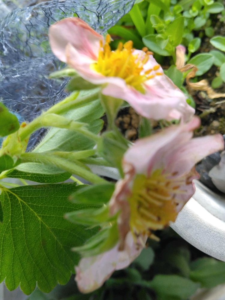 4⃣ 苺🍓の苗に実も出来はじめ、🐦から守らなくちゃ