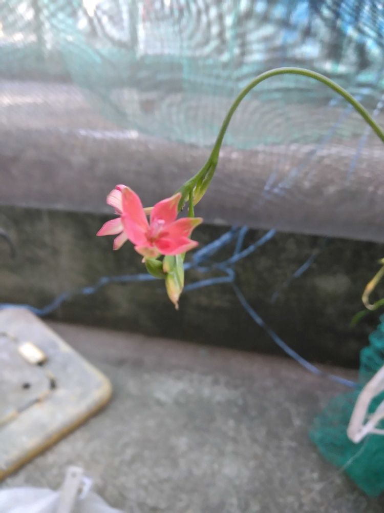 4⃣ 住居アスファルト舗装の隙間に毎年咲くヒメヒオウギの切られてしまった蕾が開花した