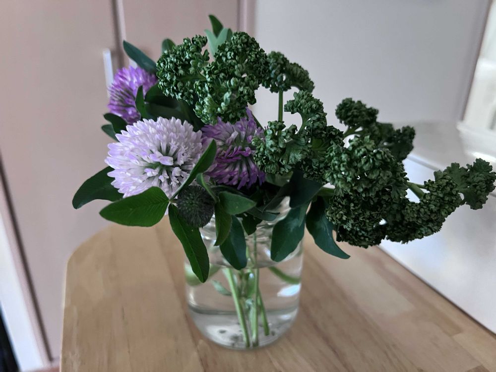 実は庭に1株アカツメクサがあるんです。母に言ったら、すぐ食卓に乗るわ😅