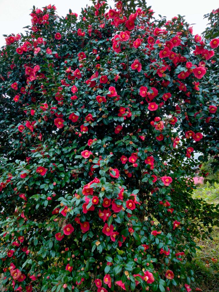 ちゃん、この椿、こんなに花咲いてるの初めて見た、どうしたのかしらね?