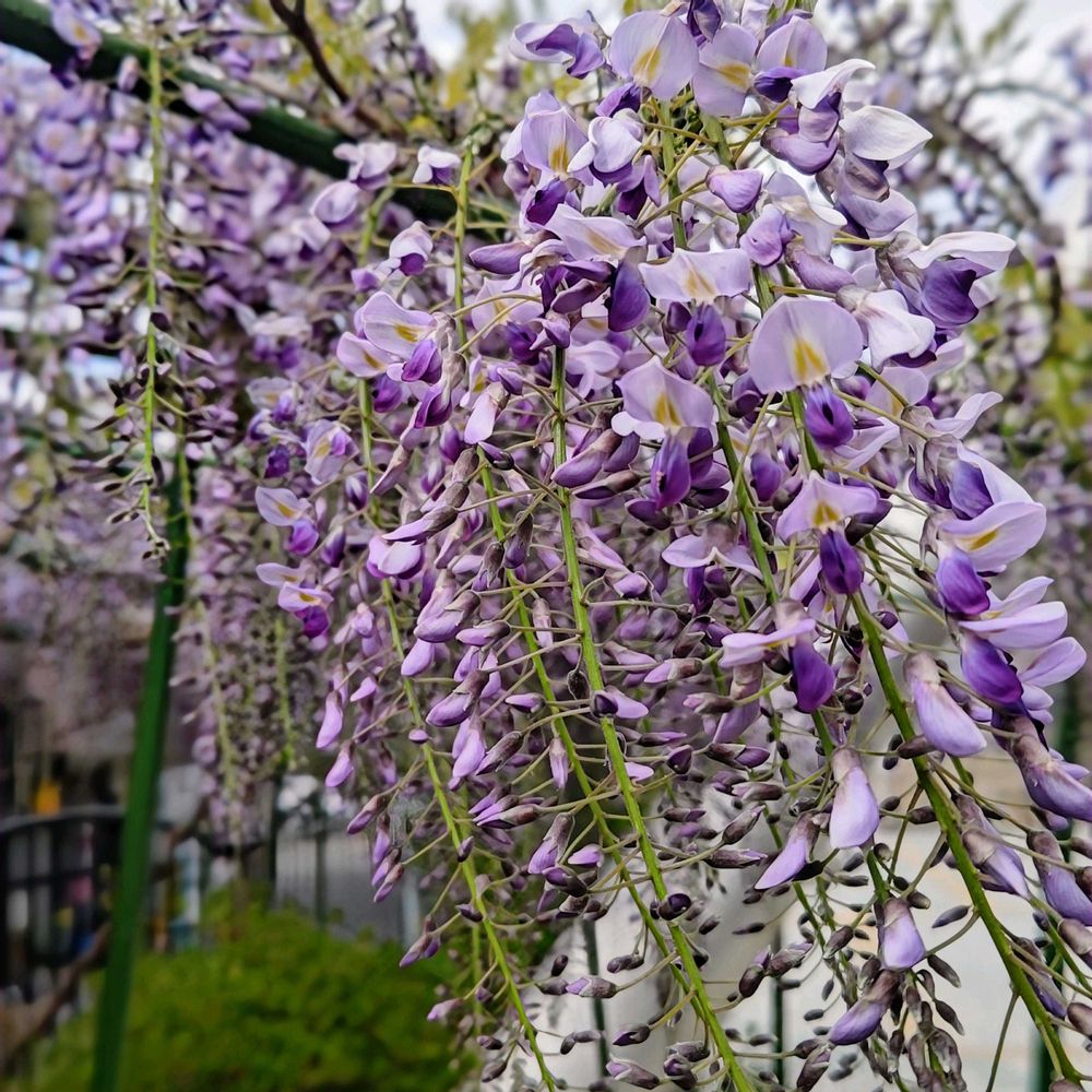 いつもの公園、裏入り口近くの藤棚のフジが咲きました。あまり大きくない藤棚ですが、見やすい高さで迎えてくれます。