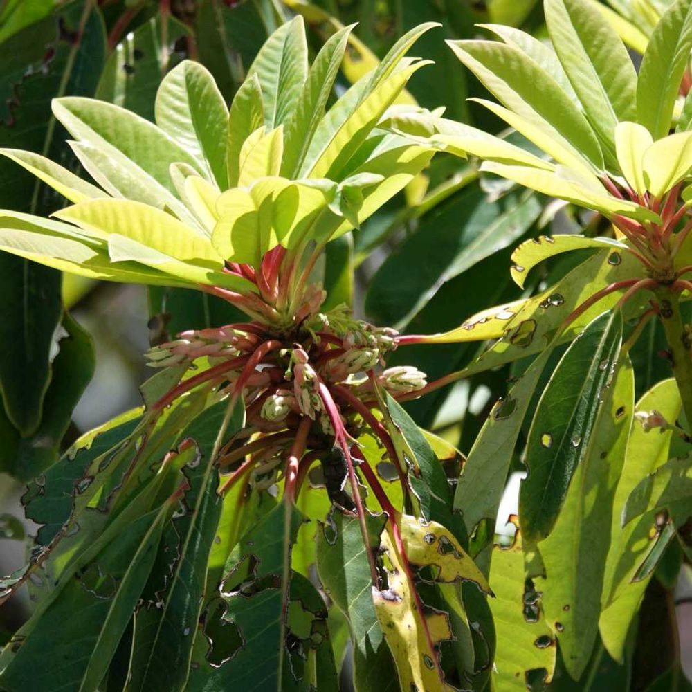 新しい葉の下に蕾らしきモノが出来ています。こちらは雌木の雌花かな、と思います。 違っていたら、教えて下さい。