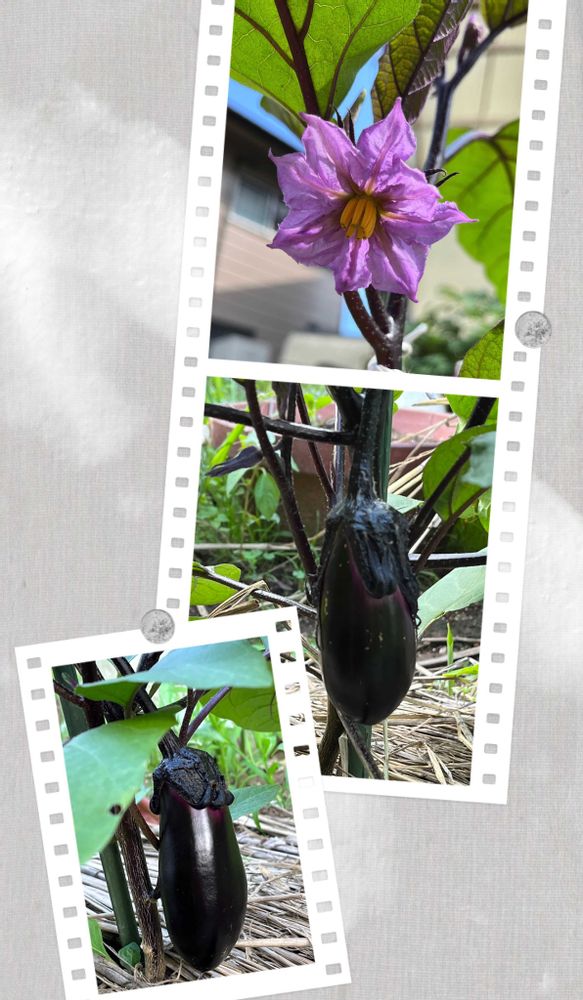昨年、我が家の庭で撮影しました😆👍🍆✨✨ 今年も育てる予定なので、再び収穫が楽しみです😆👍✨✨ ナスのお花も綺麗です🟣🌸✨ そして、ナスの実も食べても美味しいです😆👍🍆🍆