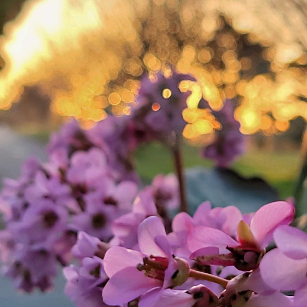 今朝 久しぶりの朝日🌄出かける前に ピンク🩷のヒマラヤユキノシタとパシャリ🤳