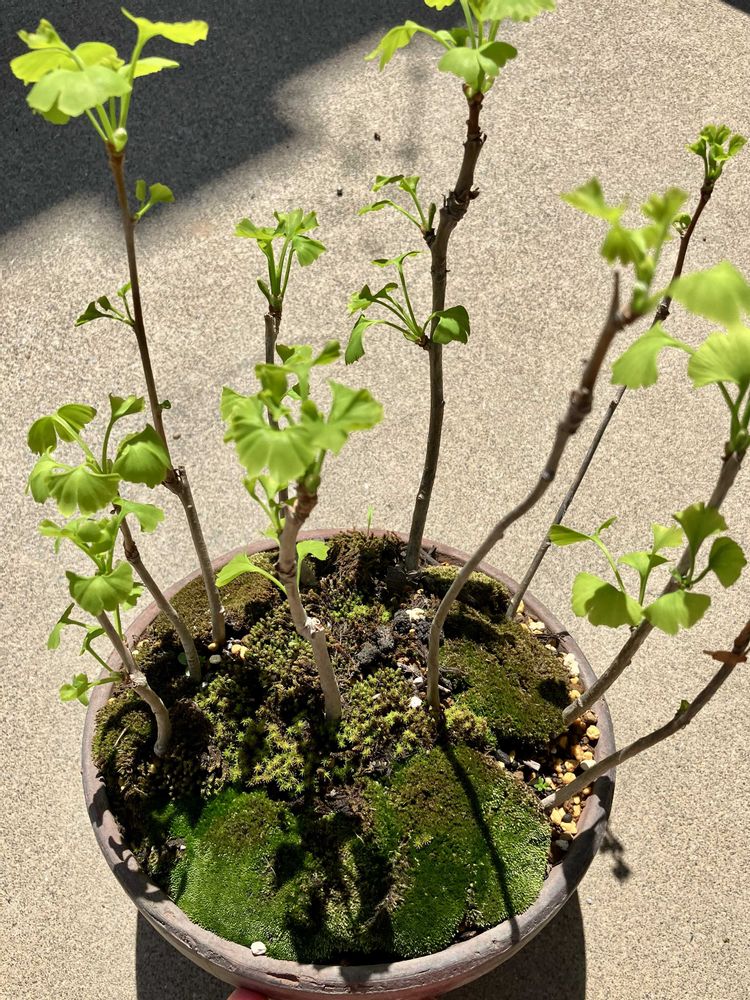 銀杏の寄せ植えの芽が