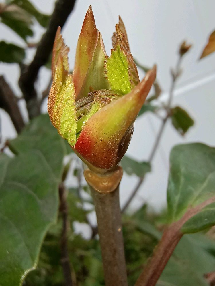 2月に冬芽葉痕を見たのに、もう満開になってました。