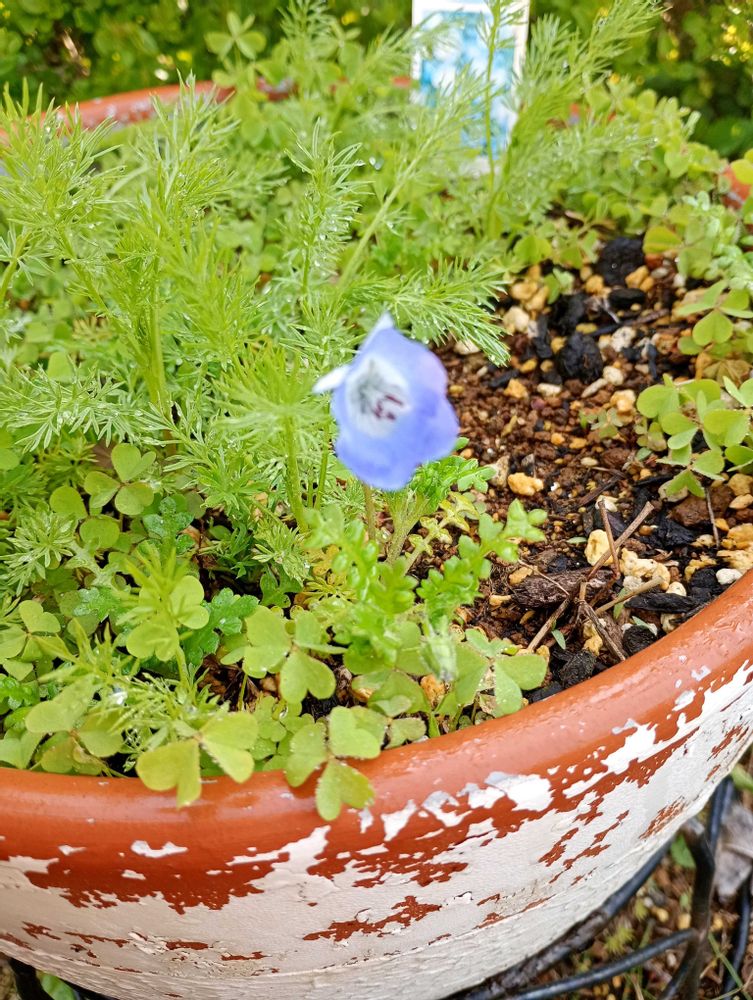 今日水やりしていて見つけました😍💓去年のネモフィラの土の中から出てきていました🥰嬉しい…💞
