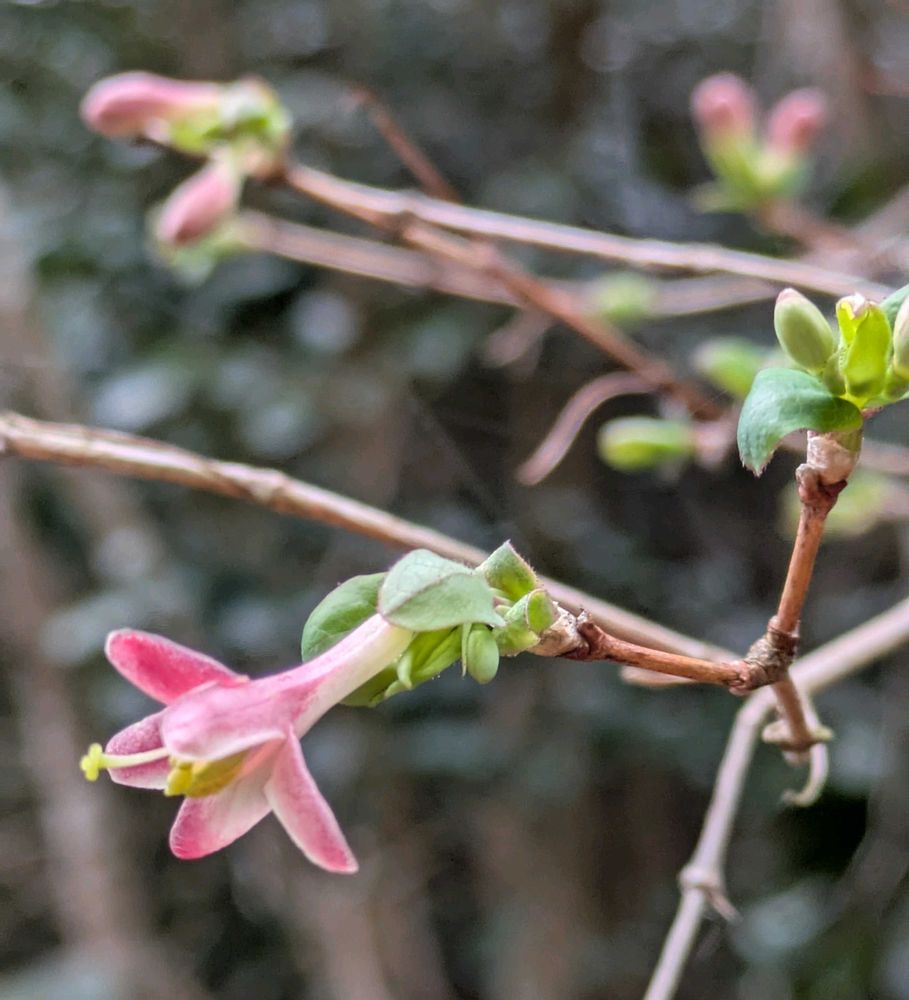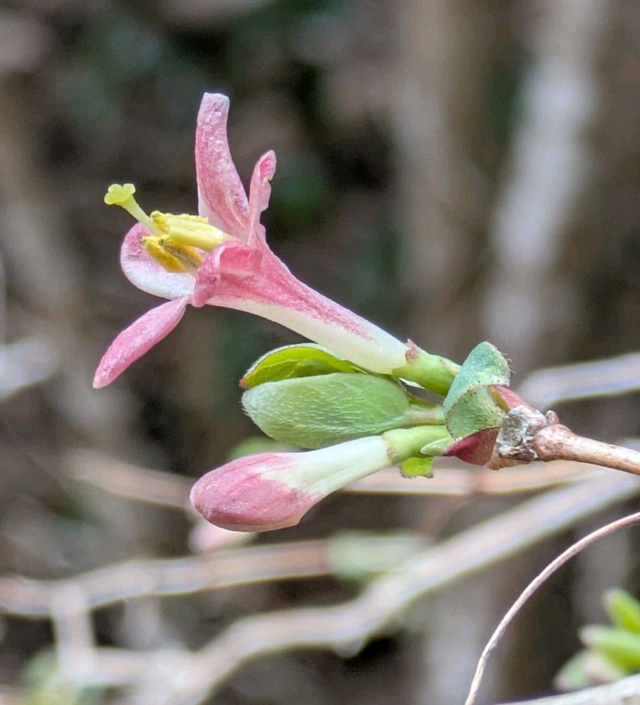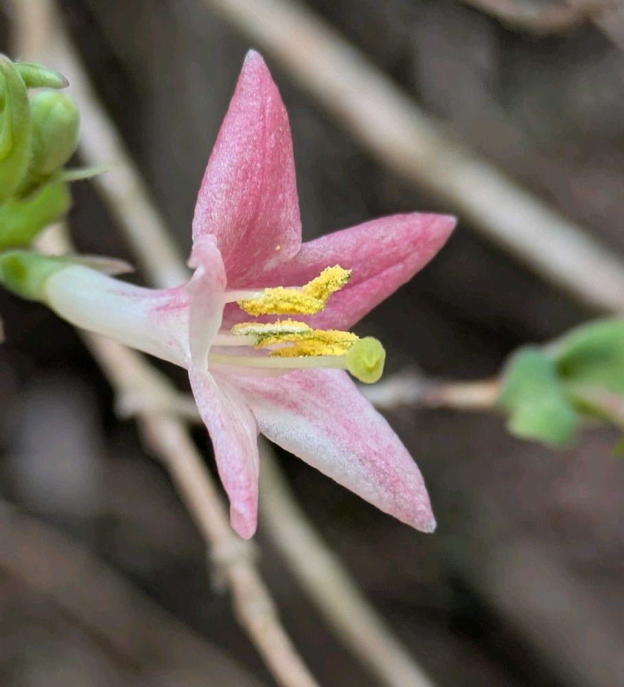 漏斗状のピンク色の花冠や花茎には毛がなくてツルツルなので、ヤマの付かないウグイスカグラ タイプ🩷